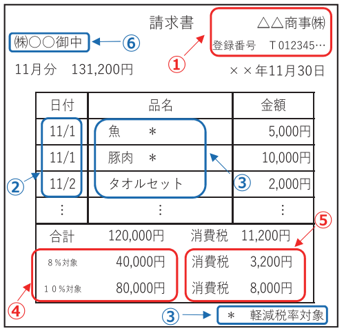 インボイス制度では、これに加えて、登録番号、適用税率、消費税額等のあらたな項目が加わることになります。