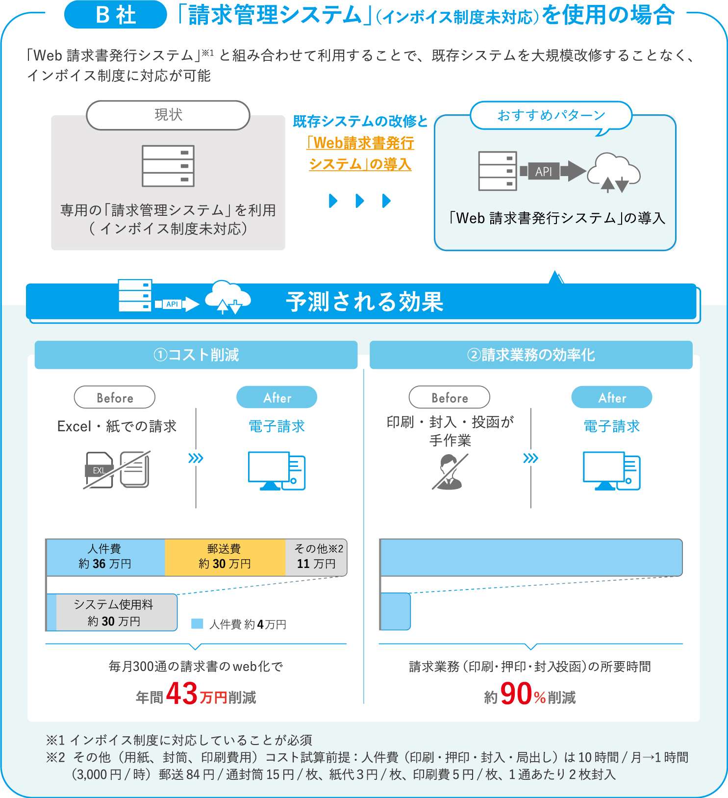 「Web請求書発行システム」と組み合わせて利用することで、既存システムを大規模改修することなく、インボイス制度に対応が可能です。